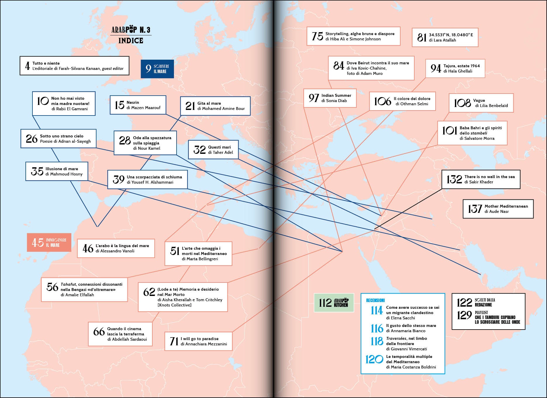 Il terzo numero di Arabpop, Mare, racconta come questo luogo d’incontro e mescolanza per eccellenza plasma l’identità, le forme culturali e l’economia delle società che nascono e si sviluppano sulle sue coste, diventando ispirazione per le loro arti, forgiandone la lingua e influenzandone gli stili di vita.