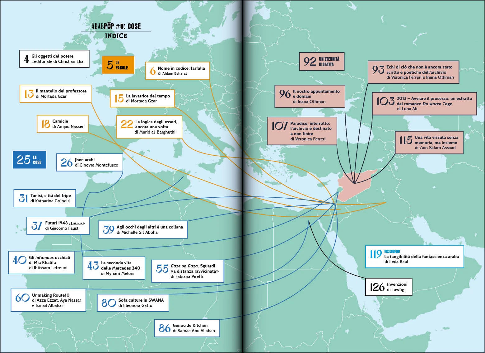 Arabpop n. 8, dedicato al tema Cose, prova a capovolgere la prospettiva narrativa partendo dagli oggetti – materiali e immateriali – per esplorarne genealogie, trasformazioni e risignificazioni.