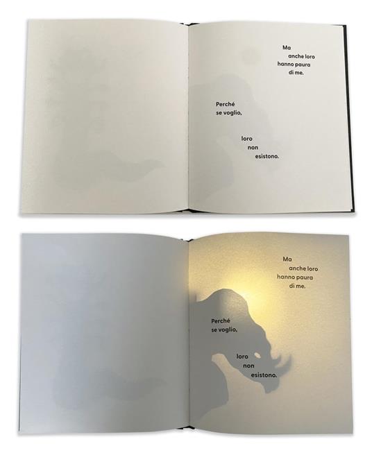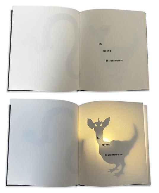 Un libro magico che si anima grazie alla luce! Mentre leggi, punta la luce della tua lampadina dietro le pagine. Un libro misterioso sulla paura del buio. Le pagine sembrano bianche... Ma i mostri si nascondono tra le pagine e appaiono solo quando la luce attraversa la carta. Sono mostri che hanno paura della luce, quindi dovrai essere al buio per farli sentire a loro agio e poterli sbirciare. Mentre leggi non si accorgeranno che li stai osservando! E quando chiuderai il libro, rimarranno tutti intrappolati e potrai dormire sonni tranquilli.