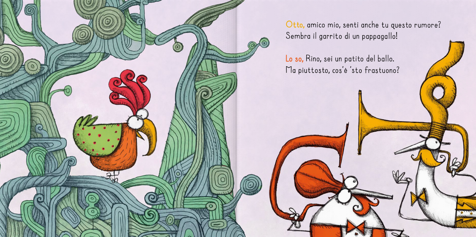Otto e Rino sono due vecchietti molto amici che trascorrono le giornate insieme chiacchierando. Loro non lo sanno, ma hanno qualche problema di udito e le loro conversazioni spesso finiscono in un gran baccano. Ecco allora che pappagallo diventa ballo, cocco arriva come sciocco, tordo come sordo... con scenette rese ancora più divertenti grazie alle illustrazioni dallo stile inconfondibile di Sergio Olivotti.