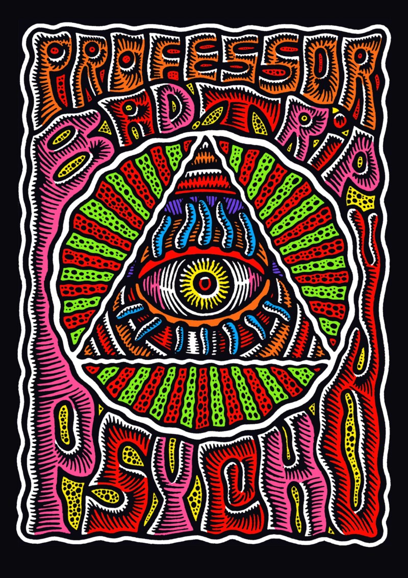 Torna finalmente in libreria l’artista più influente della scena underground italiana. Gianluca Lerici in arte Professor Bad Trip con i suoi fumetti e le sue illustrazioni ha segnato un’epoca: dalle fanzine autoprodotte ad arrivare alle copertine per i libri di Niccolò Ammaniti, i suoi lavori sono ormai un importante tassello della controcultura italiana proprio come l’arte di Andrea Pazienza. A più di dieci anni dalla sua prematura scomparsa Eris riporta in libreria le opere del Prof. Bad Trip a partire da Psycho, il suo fumetto più lisergico, visionario e cyberpunk, in un volume di pregio arricchito da Kathodic Karma (mai ripubblicato dagli anni ’90) e un testo critico di Vittore Baroni.